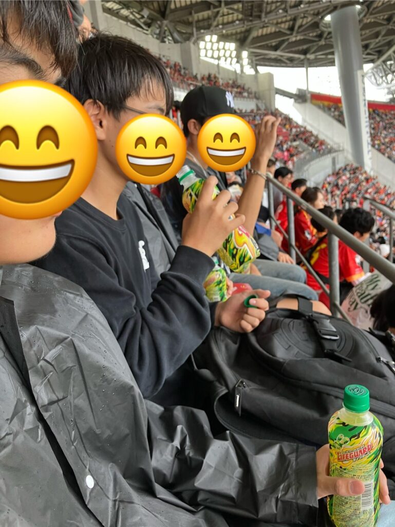 10月4日(土)、影山早苗様に、豊田スタジアムにて行われた名古屋グランパス×セレッソ大阪の試合に子ども達を招待していただきました。試合前の練習にも参加させていただき、お昼は会場に出店しているキッチンカーでごちそうになり、試合も最後まで観戦することができ、みんな大満足、大喜びでした。本当にありがとうございました。