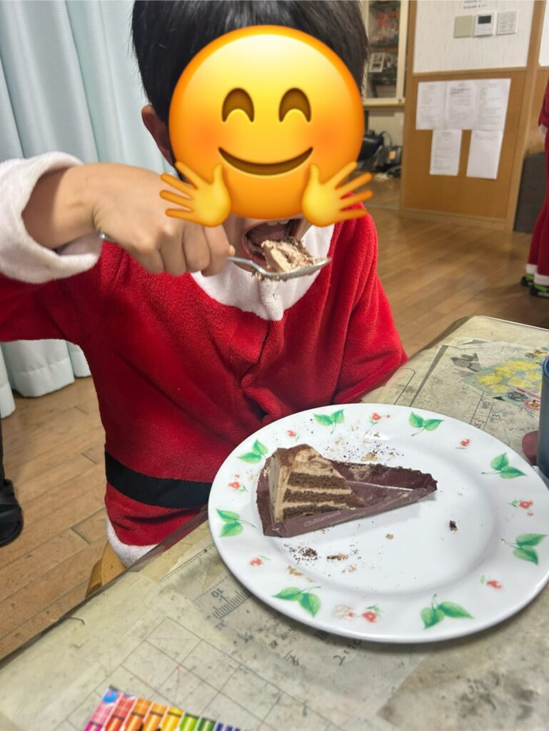 12月24日(水)、影山早苗様にクリスマスケーキをご寄贈いただき、子ども達みんなで一緒に食べました。とても大きくてみんな大喜びでした。ありがとうございました。