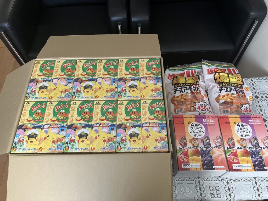 10月22日(水)、影山早苗様からこんにゃくゼリーやお菓子をご寄贈いただきました。いつも本当にありがとうございます。