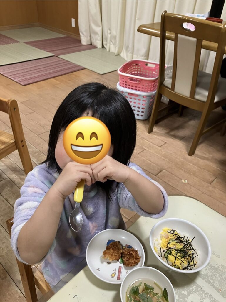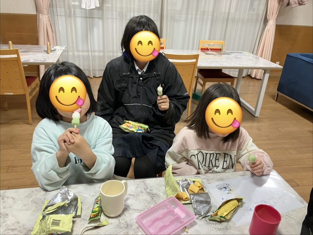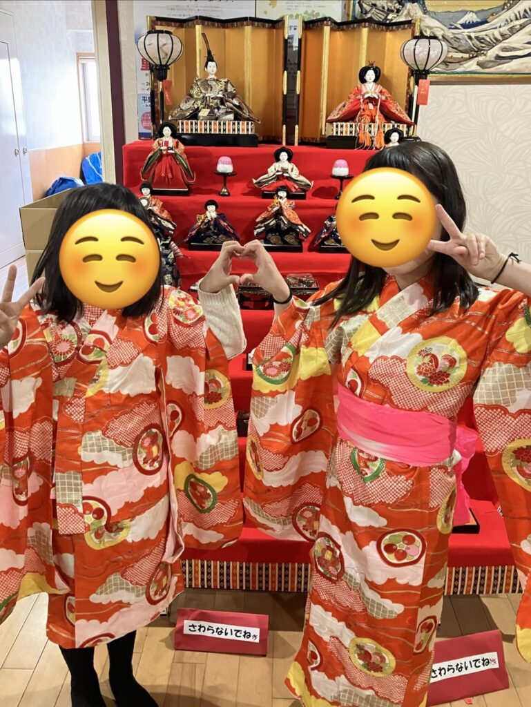 3月3日(火)はひな祭り。お雛様の前でみんな写真を撮りました。お団子も食べ、夜はちらし寿司をいただきました。